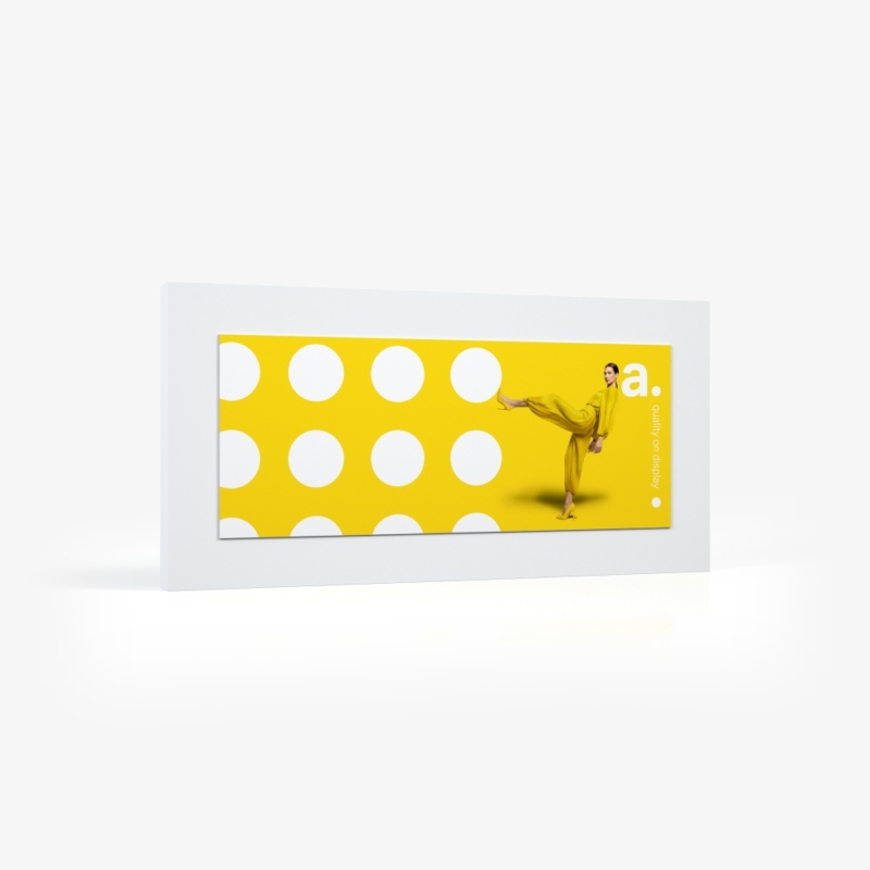 The adFrame STFL advertising panel is an attractive way to present your offer or graphics. With a frame width of just 1.6 cm, it provides an easy assembly process that takes place directly on the wall (screws not included). Thanks to the handy design of the aluminium profiles, the textile lightbox is suitable for an aesthetically pleasing presentation at various trade fairs and exhibitions.The textile graphics, thanks to the rubber trim, fit perfectly into the frame without showing any creases. The quick exchange of the print makes it easy to adapt the presentation to changing campaigns. In addition to the standard dimensions, we can create a customised design. Economical, easy to install and aesthetically pleasing, the adFrame STFL advertising lightbox will provide a striking and professional highlight for your brand.