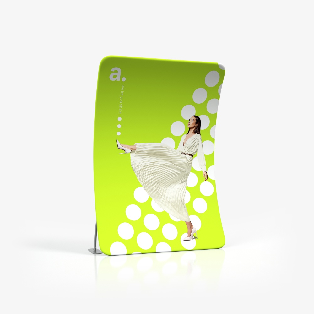 The product presented here is a curved wall. Its distinctive shape, guided by a vertical curve, makes the structure better capture the audience’s attention compared to other exhibition systems. By using our wall, you will enhance your promotional message, making the advertisement more effective and easier to reach customers.
