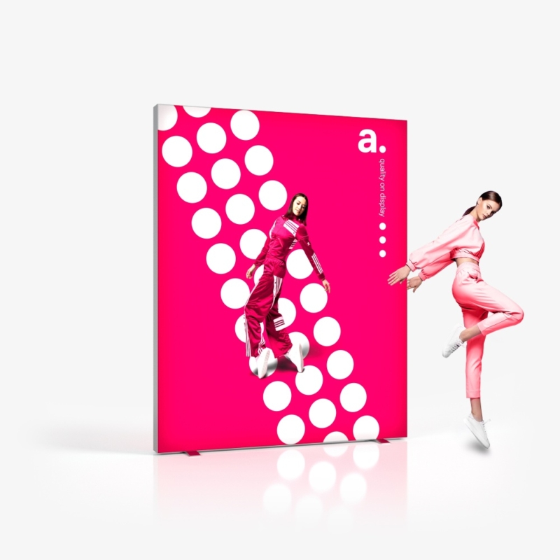 La fel ca structura adFrame LMD, printurile sunt complet personalizabile și pot fi înlocuite oricând, în funcție de nevoile tale. Desenele dvs. grafice vor fi plasate pe un material textil durabil. Metoda de sublimare utilizată garantează o calitate fotografică a imprimării. În plus, panoul LED cu două fețe permite schimbarea rapidă a graficii, oferindu-ți flexibilitatea de a afișa conținut diferit în funcție de eveniment.