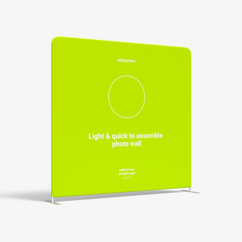Produsul prezentat aici este un perete textil drept, dar adSystem oferă și pereți curbi și alte forme. Am pregătit pereți de expoziție modulară în diferite dimensiuni, așa că răsfoiți sortimentul nostru și alegeți sistemele optime pentru afacerea dvs.