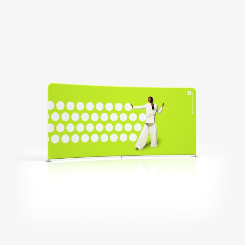 Structura din aluminiu a peretelui urmează linia unui arc orizontal. Acest lucru îl face să iasă în evidență și mai mult față de alți pereți și față de sala sau centrul comercial în sine. Alegerea acestui produs vă va ajuta să atrageți potențiali clienți și să consolidați impactul mesajului dvs. promoțional.